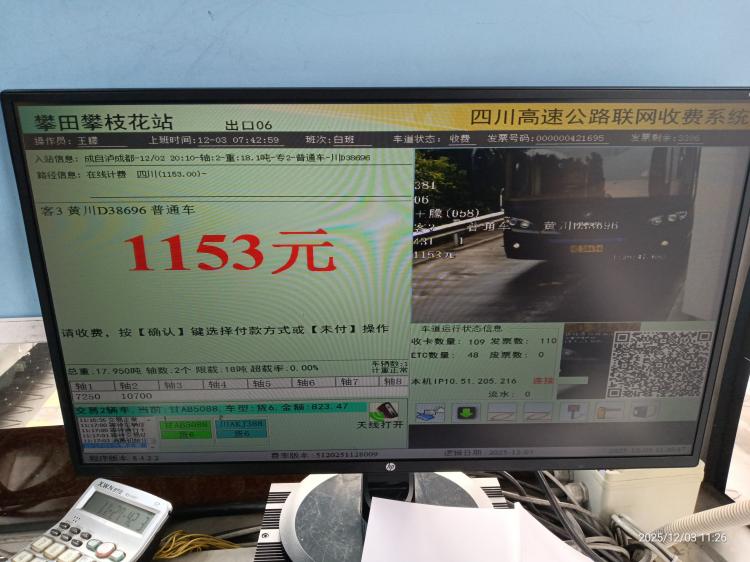2025年12月3日11时,一辆车长大于6000mm的9座专用大型客车从攀枝花站06道出站口时,引发收费争议。该车根据《收费公路车辆通行费车型分类》行业标准相关规定,因车长不小于6000mm且核定载人数不大于39人的载客汽车,明确属于3类客车范畴,应按3类客车收费标准缴纳通行费。但驾驶员以行驶证载明为“专用客车”并且在其他收费站出站均按专项作业车计费为由,要求按照入口(专2)错误车型收费,拒绝按3类客车标准缴费。