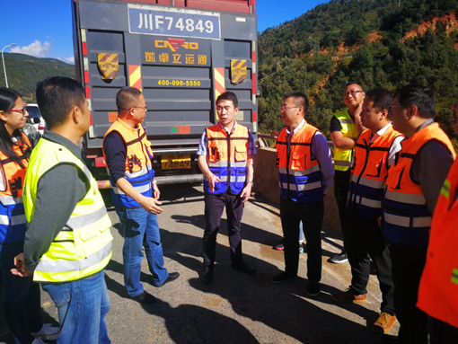 2018年10月16日,四川省交通运输厅工程质量监督局副局长高艳龙、技术科左雅娅一行到攀西公司西攀路、攀田路开展竣工验收质量鉴定现场复查工作。川高公司工程部经理廖知勇、工程部副经理李祖君、公司副总经理刘严才、养护部以及管理处相关人员陪同现场检查。