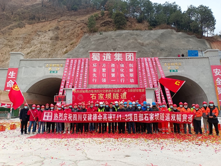 2022年2月21日,德会高速公路TJ1-3标段石家坝隧道顺利实现双幅贯通,完成了历时500多天的长距离穿越。标志着德会高速关键高风险工程取得了重大节点胜利,为早日实现通车目标奠定了坚实基础。